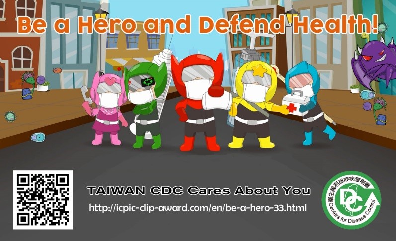 “Be a Hero and Defend Health!” and “Antibiotics Awareness Week” are produced by the Centers for Disease Control under the Ministry of Health and Welfare and National Taiwan University Hospital, respectively.