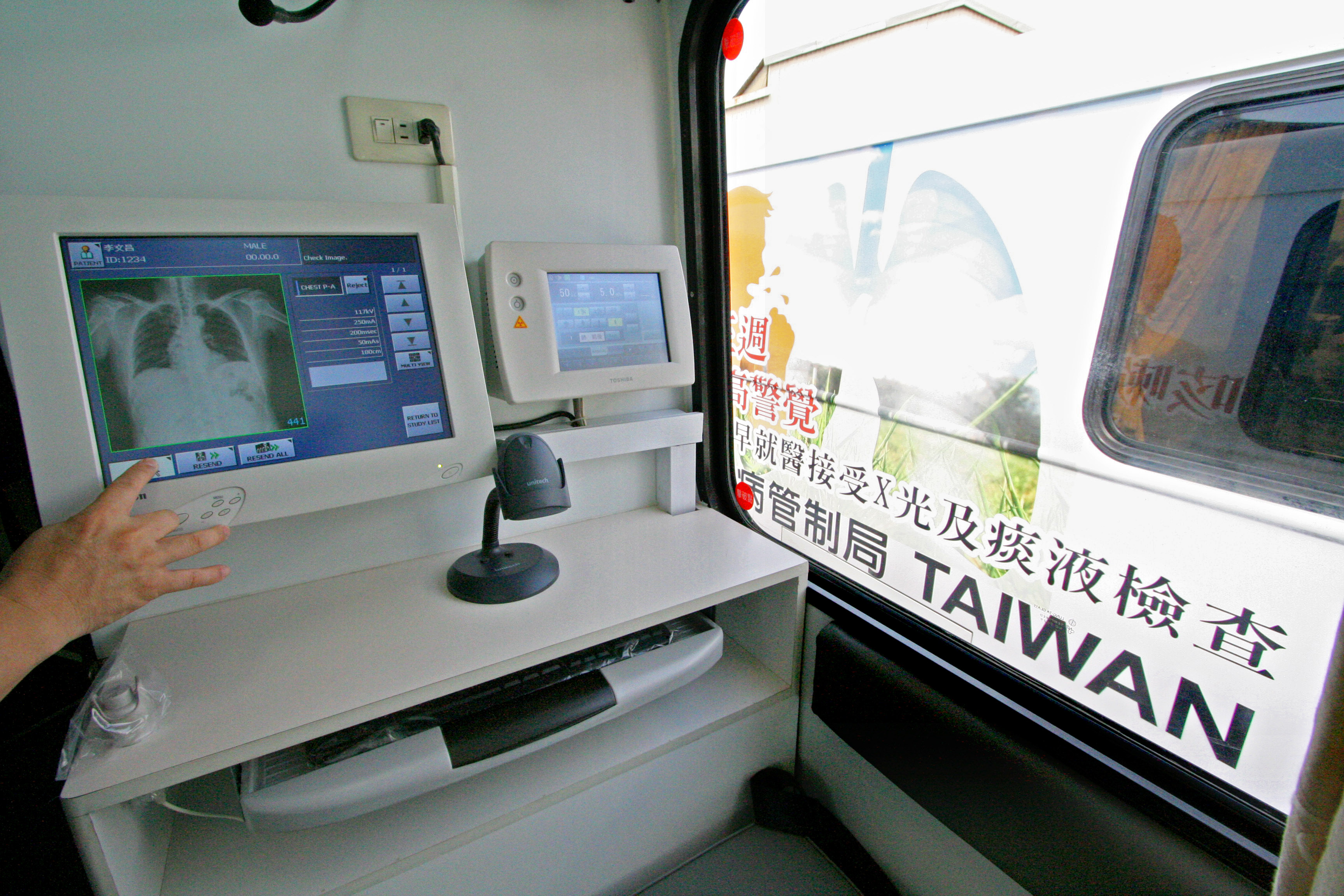 為提昇X光巡檢效率與服務品質,疾病管制局積極改善原有老舊的傳統X光巡迴車,強化檢查儀器設備,引進數位X光巡迴車,不僅影像的產生無須底片沖洗,數位化的影像容易儲存且可即時傳輸至遠端的醫師判讀診斷,便於給予是否進一步驗痰等醫療建議,對疫情掌握及資訊管理將更有效率。該局四部嶄新的數位X光巡迴車在本月完工交車,未來將成為主動篩檢的一大利器,在全國北中南東各區為民眾健康把關。