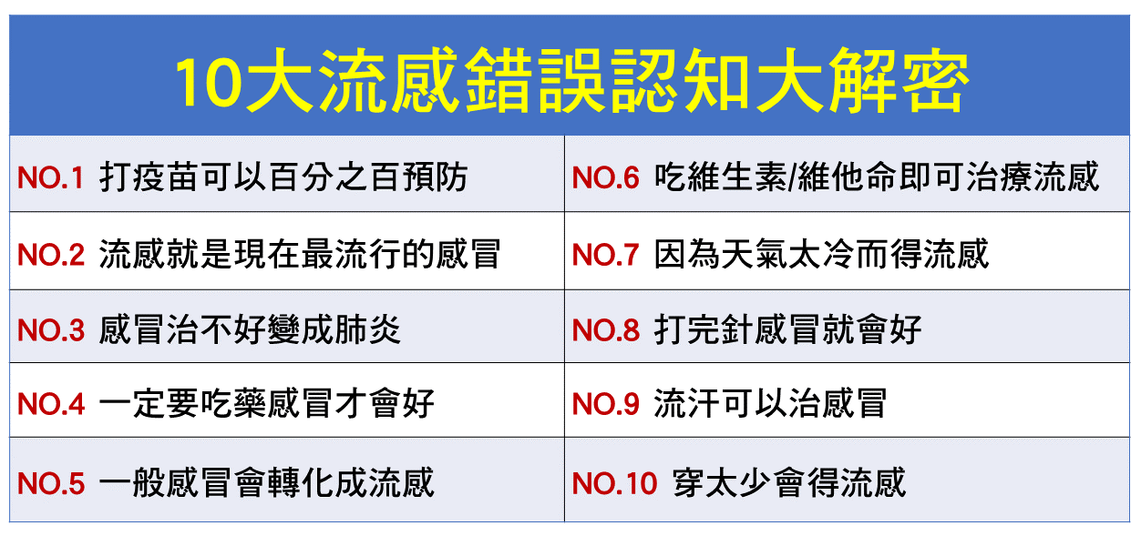 疾管署委託分析近半年網路聲量數據,並找出網路社群及媒體討論聲量或關注度前10高的流感錯誤認知(如附檔)
