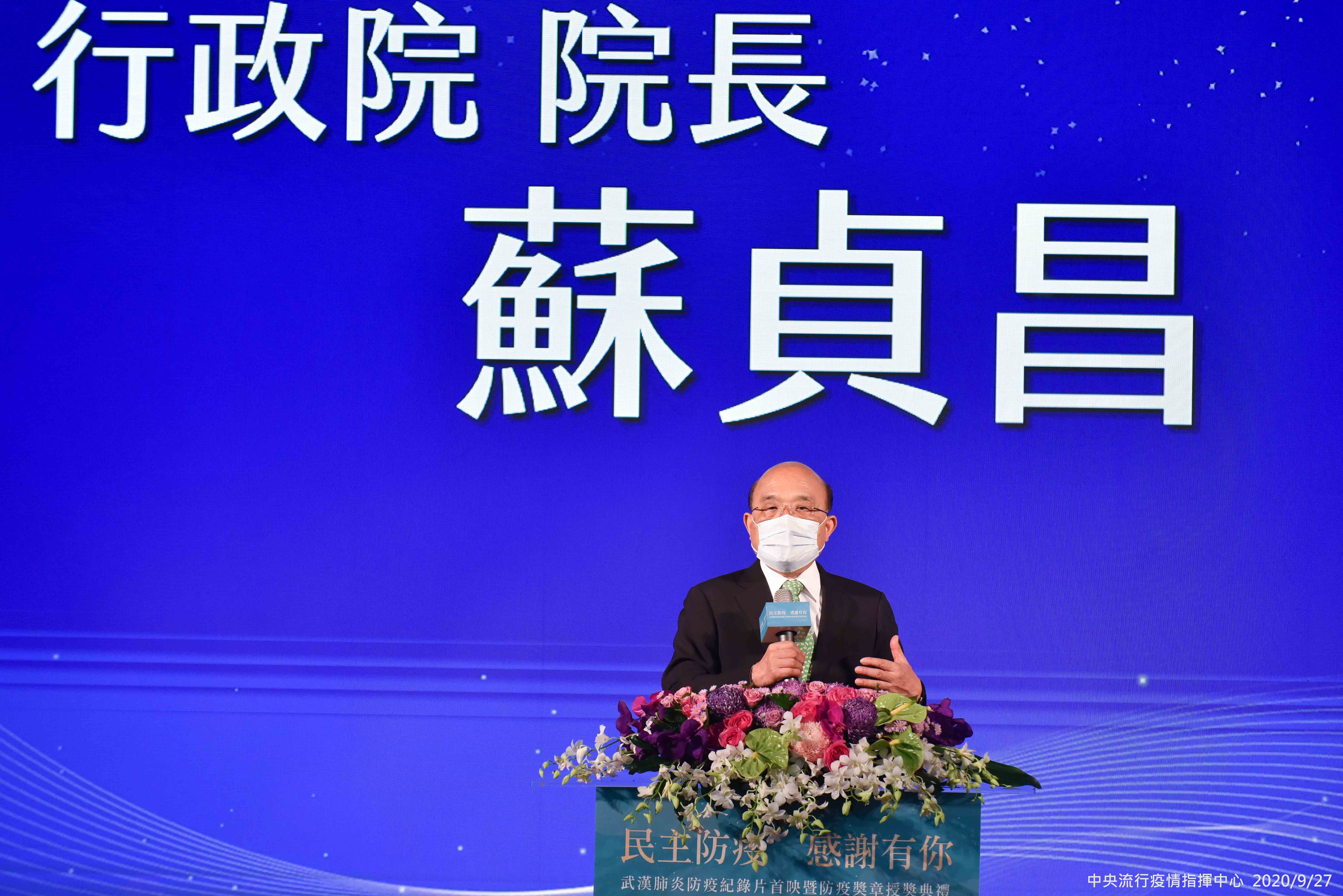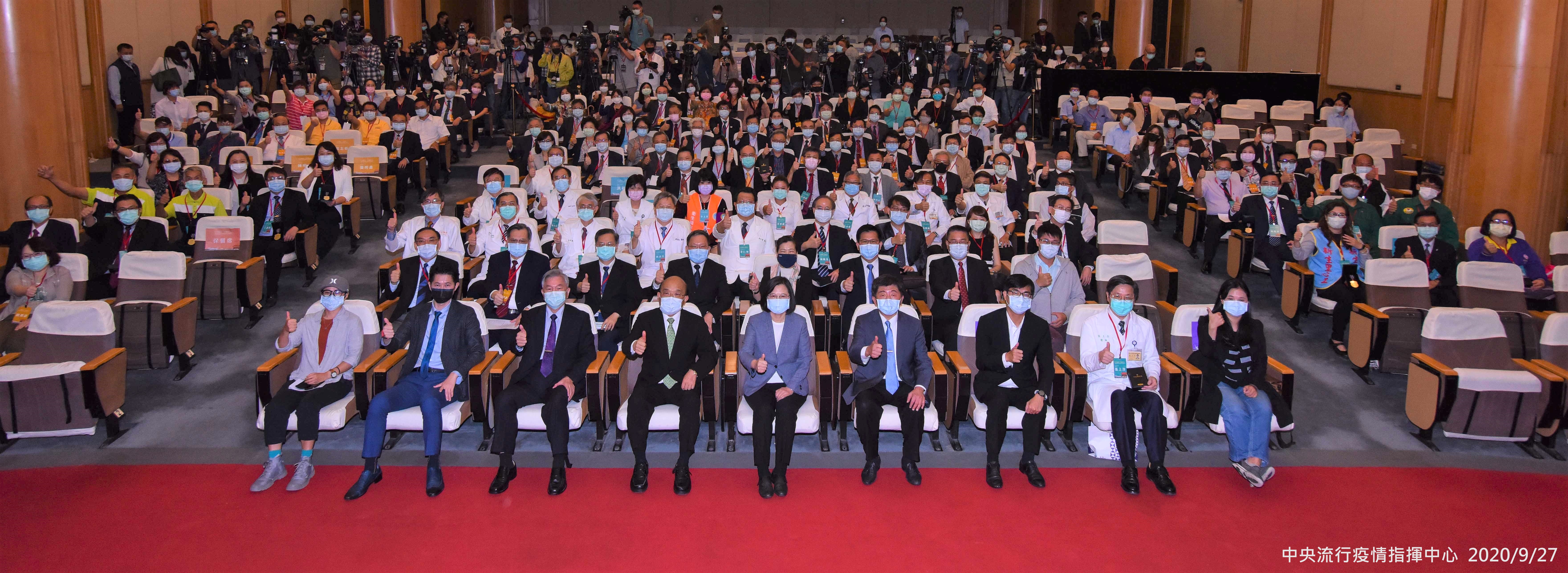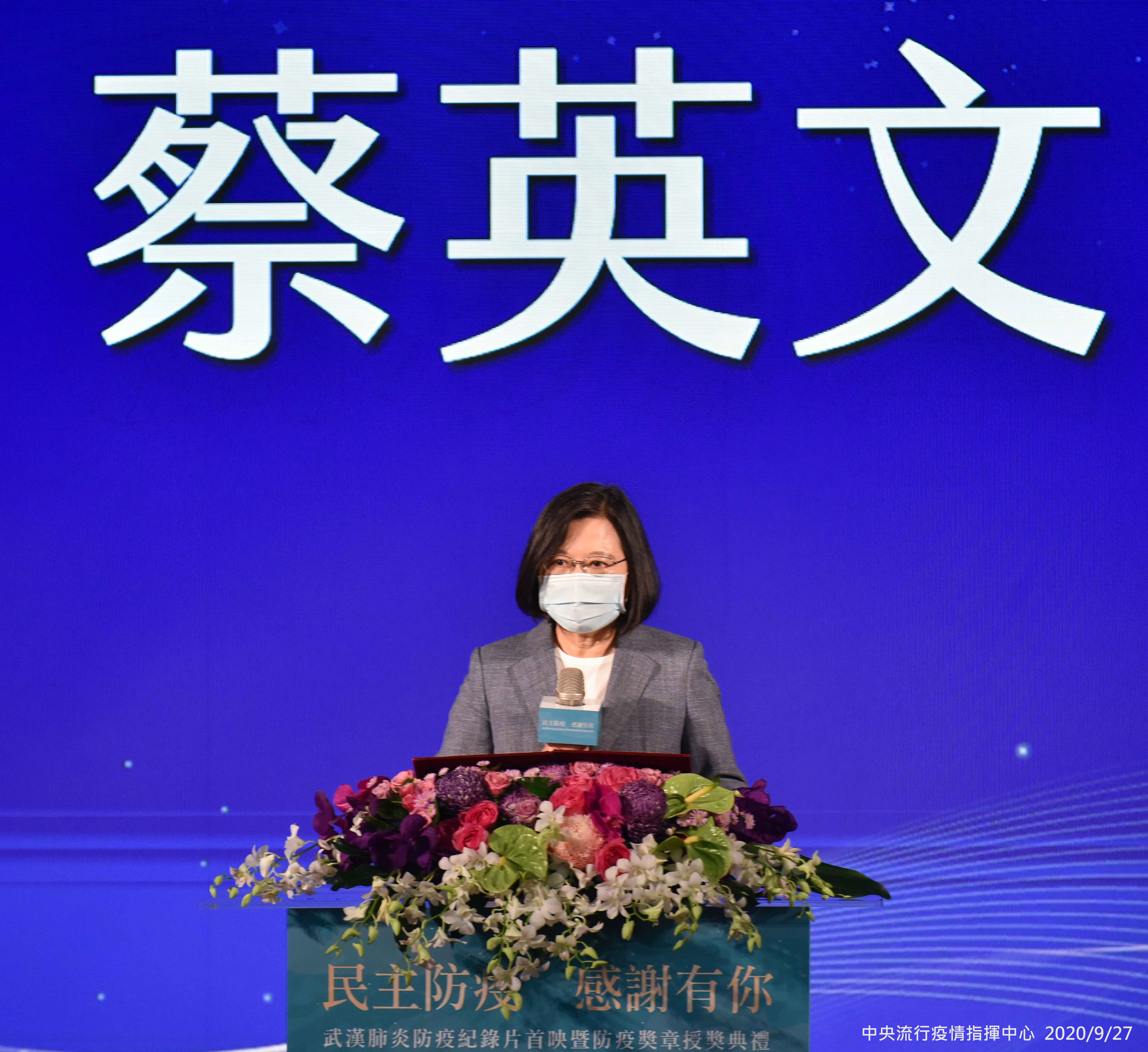 中央流行疫情指揮中心今(27)日以「民主防疫 感謝有你」為題,於圓山大飯店舉行「武漢肺炎防疫紀錄片首映暨防疫獎章授獎典禮」,由蔡英文總統親自頒發「防疫獎章」予全國44位對防治COVID-19(武漢肺炎)工作卓有貢獻的個人與團體代表,感謝這些在民間默默協助的幕後防疫英雄,義無反顧地在各行各業努力,為全民編織起縝密的防疫網絡,守護我們的家園,為臺灣在全球疫情浪潮之中,創造珍貴又安定的力量。