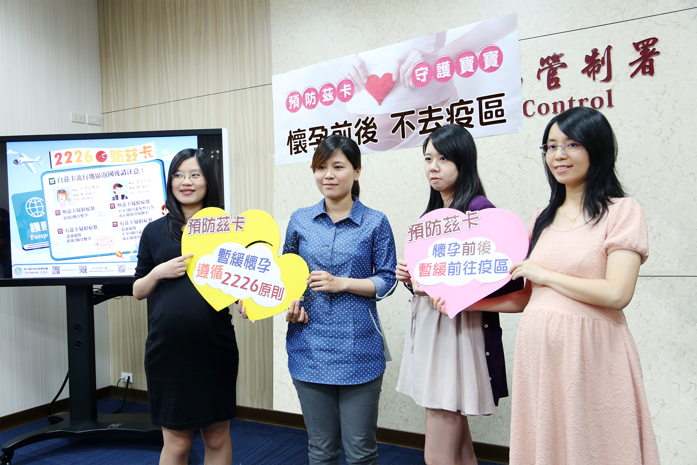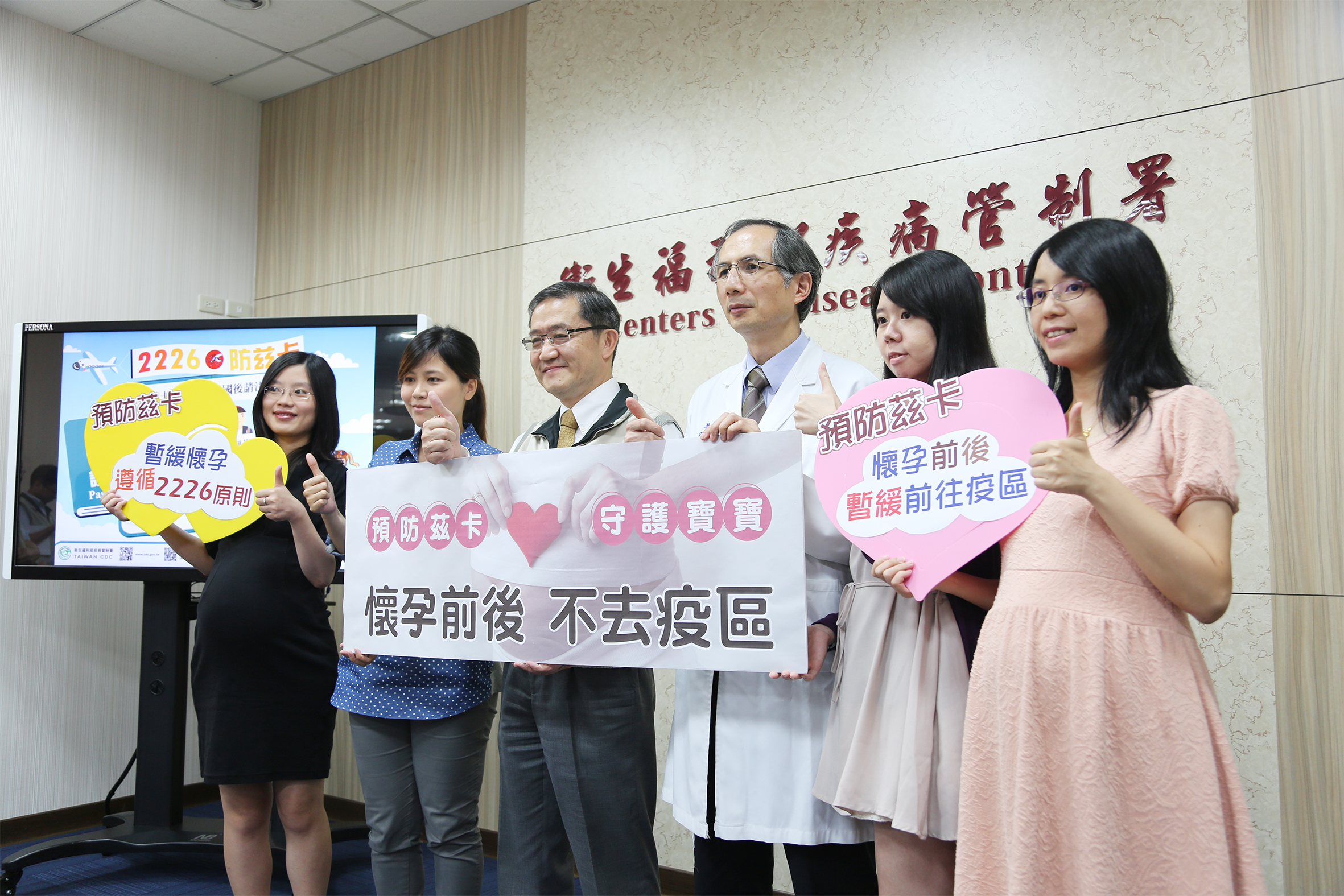 國際茲卡疫情持續發生,鑒於現有證據顯示,孕婦感染茲卡病毒與胎兒小頭症及其他胎兒腦部嚴重缺陷之因果關係已具強烈科學共識,其中又以第一孕期(懷孕前3個月)孕婦風險較高,適逢暑假旅遊旺季,疾管署與台灣婦產科醫學共同呼籲,計劃懷孕或已懷孕婦女暫緩前往東南亞與中南美洲茲卡病毒流行地區,讓胎兒平安出生、健康成長。