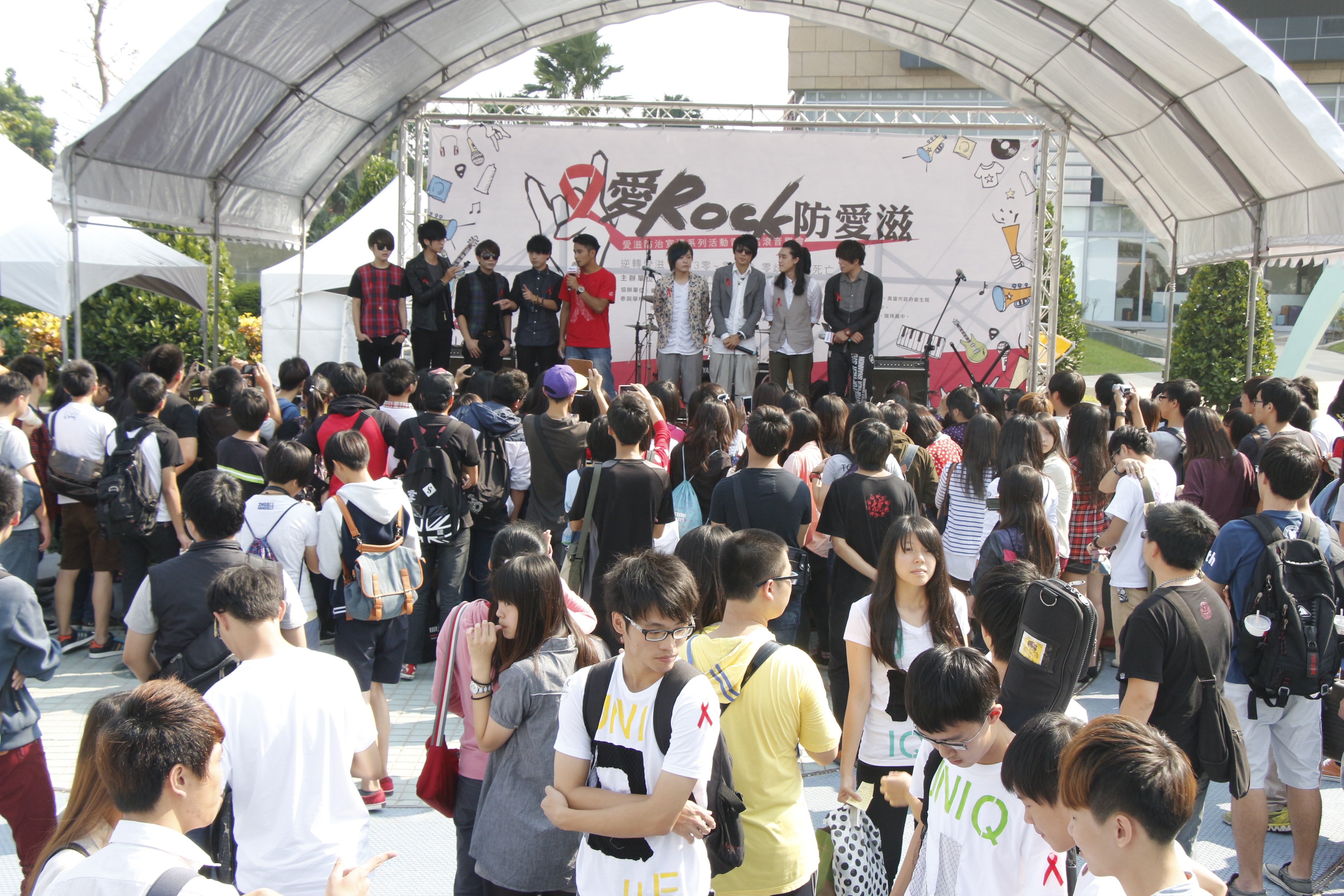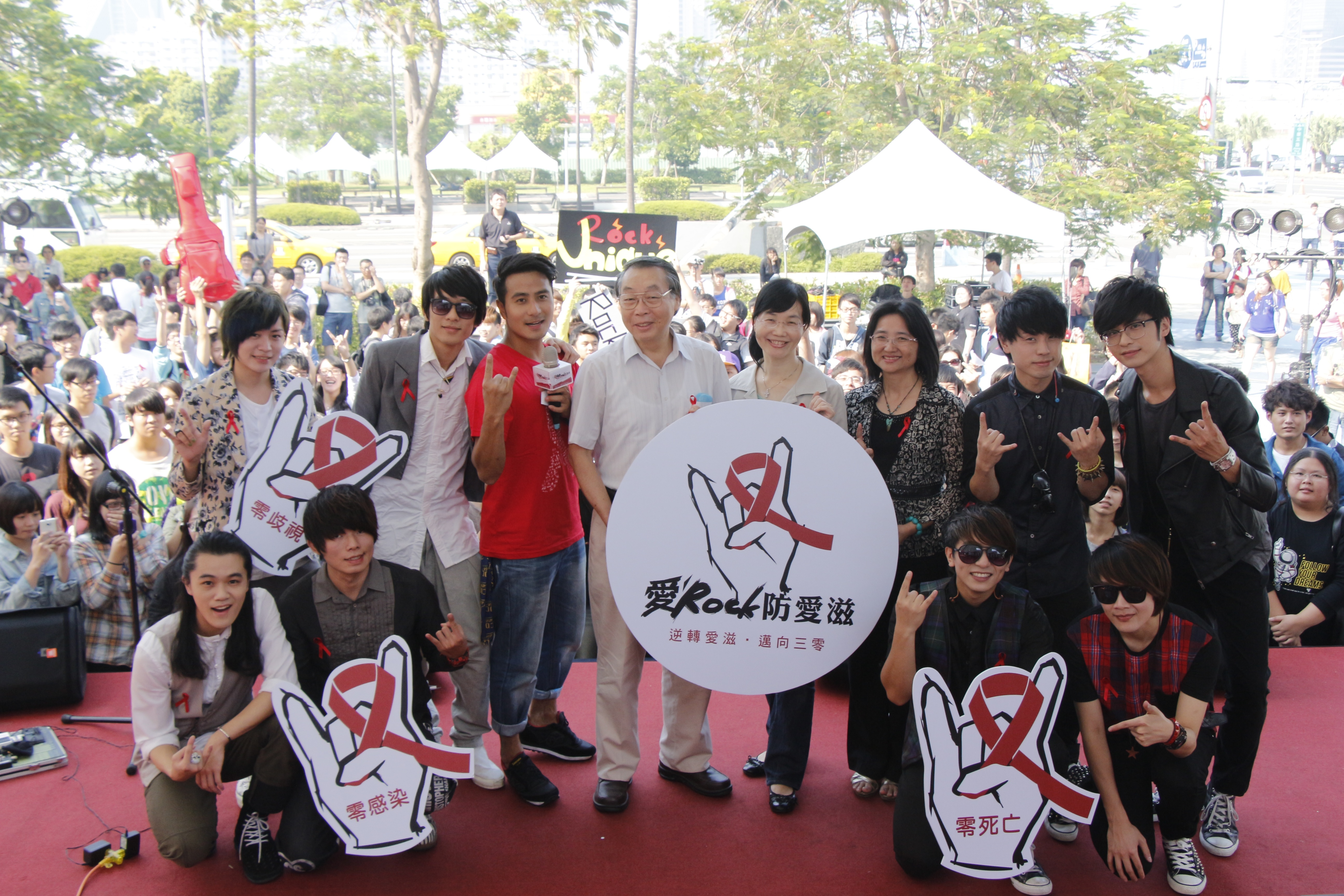 為加強學生族群愛滋防治觀念,「愛Rock●防愛滋」青春搖滾音樂會本日巡迴至高雄地區,衛生福利部疾病管制署、高雄市政府教育局、衛生局及高雄15家高中(職)及大專熱音社,於高雄夢時代購物中心時代廣場連續5小時搖滾熱唱不停歇。