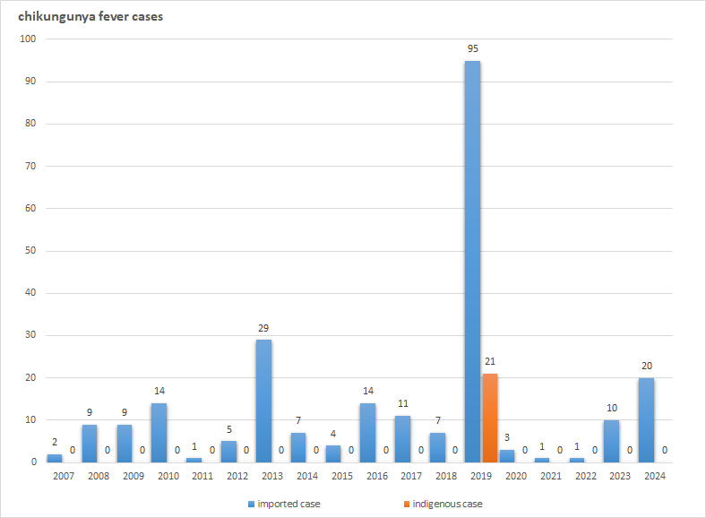 Figure: Chikungunya fever cases in Taiwan, 2007-2024.