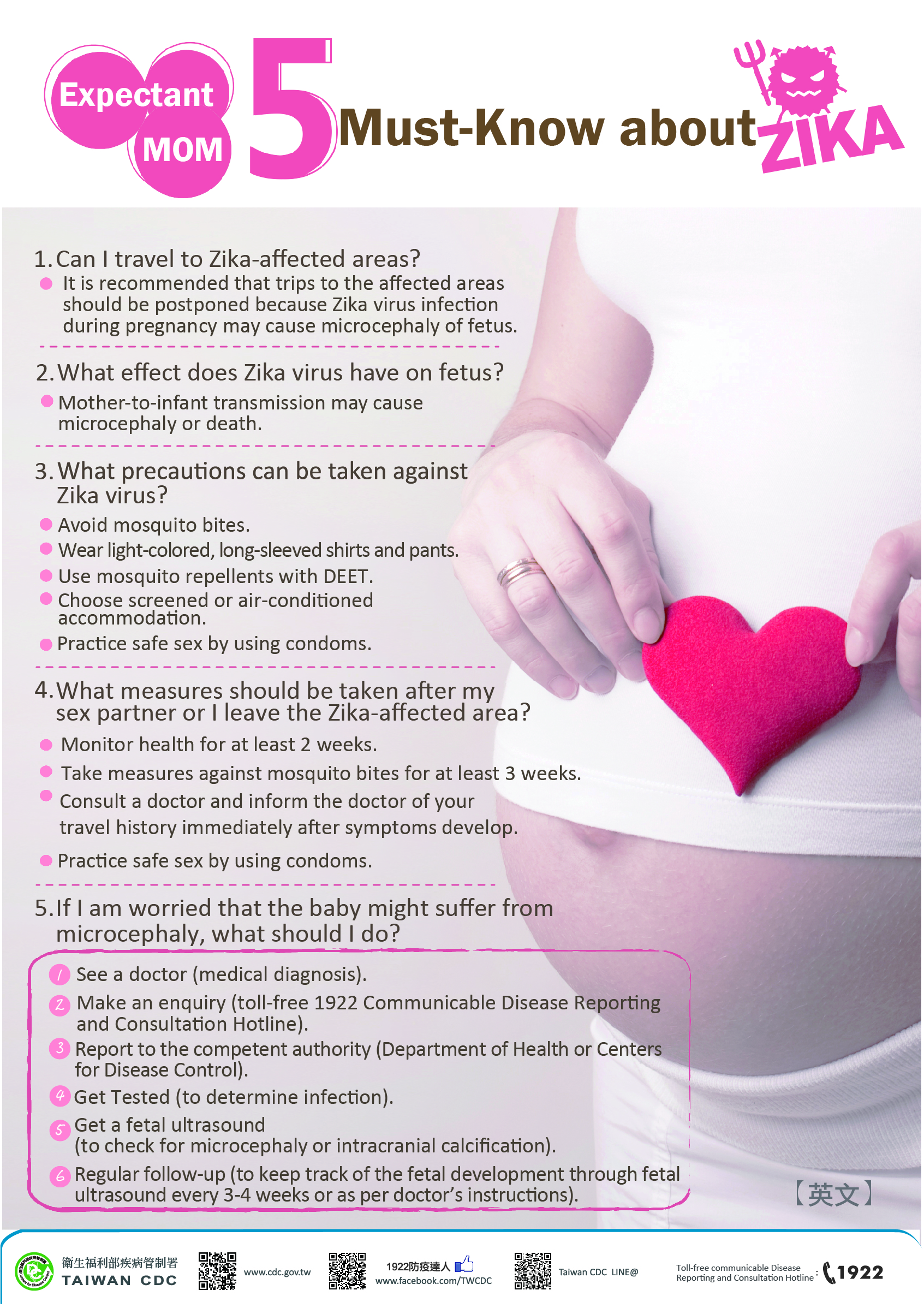 From the 1960s to 1980s, human infections of Zika virus were found across Africa and Asia, typically accompanied by mild illness. The first large outbreak of disease caused by Zika infection was reported from the Island of Yap (Federated States of Micronesia) in 2007. From 2015 to 2016, the virus spread and affected more than 70 countries in the Americas, Oceania, Southeast Asia and Africa. In Taiwan, the first imported case was identified in January 2016. No local transmission of the virus has occurred and only 26 imported cases have been conformed in 2016-2022. None of the cases are pregnant women or newborns.