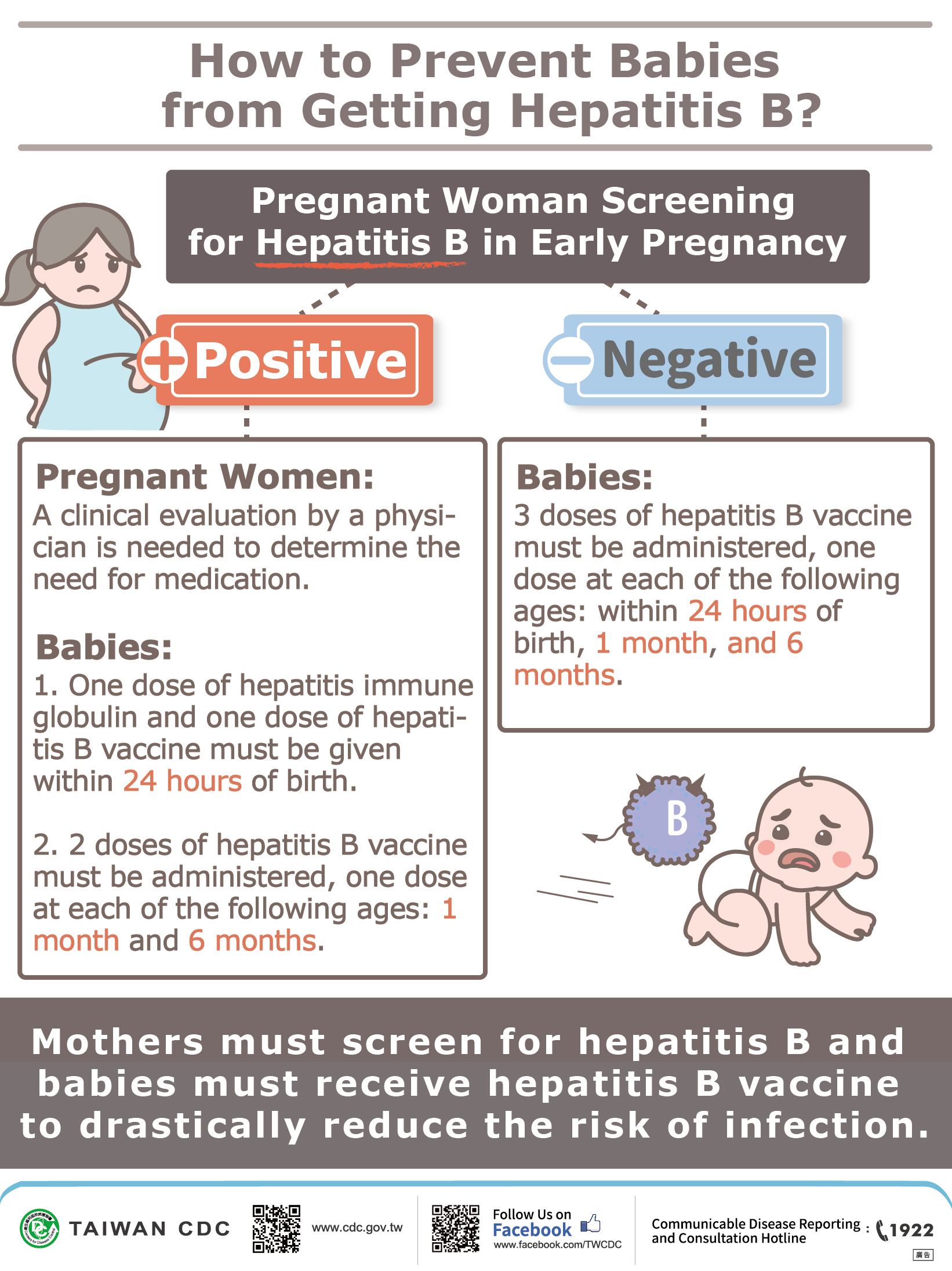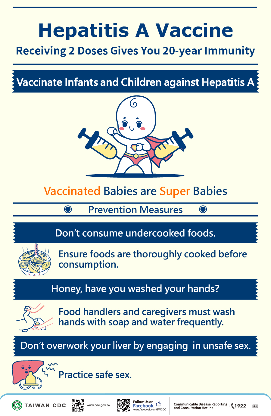 Hepatitis B is a viral infection that attacks the liver and can cause both acute and chronic disease. The virus is transmitted through contact with the blood or other body fluids of an infected person. An estimated 257 million people are living with hepatitis B virus infection (defined as hepatitis B surface antigen positive). In Taiwan, about 100-125 confirmed cases were reported to Taiwan’s notifiable disease system during 2012 to 2016. Hepatitis B is an important occupational hazard for health workers. Hepatitis B is preventable with the currently available safe and effective vaccine.