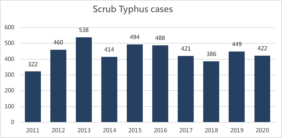 Figure: Scrub typhus cases in Taiwan, 2013-2022.