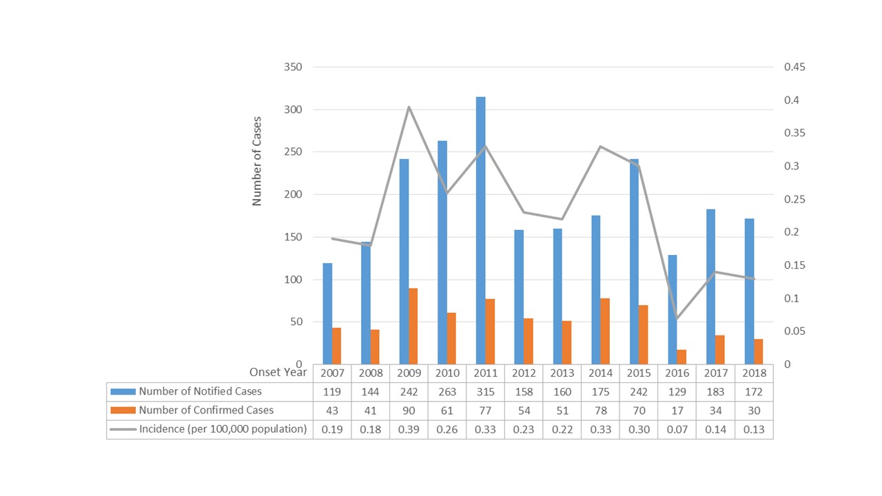 Figure: Pertussis by year, Taiwan