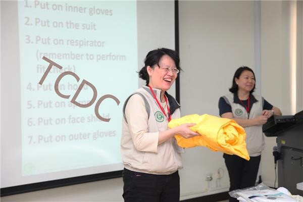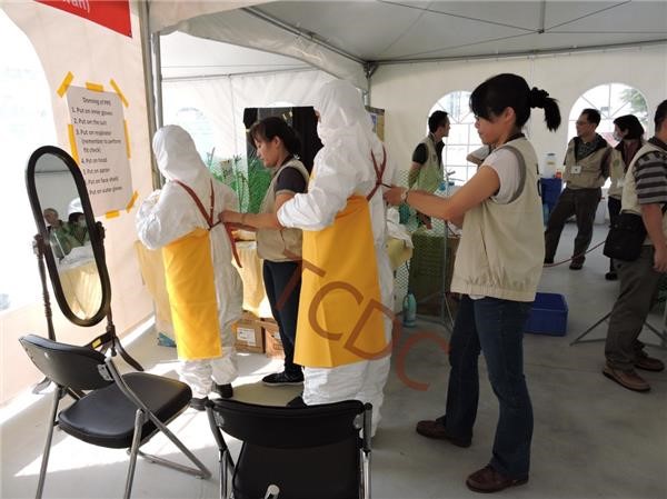 The Ebola training course was held at the Center for Infectious Disease Control and Prevention of Taiwan CDC in Tainan Cityduring March 18-20, 2015. In collaboration with the U.S. Department of Stateand the American Institute in Taiwan (AIT), 16 participants from Indonesia,Malaysia, Philippians, Cambodia, Singapore and Vietnam joined the trainingcourse. Moreover, two experts from the U.S. were invited to share theirexperiences with all participants. Both of them worked in Ebola Treatment Units(ETU) in Sierra Leone in the wake of the Ebola crisis and later served astrainers at the training course "Preparing Healthcare Workers to Work in EbolaTreatment Units (ETUs) in Africa" conducted by the US CDC in Anniston, Alabama.The training course was modeled after the courses organized by US CDC and amock ETU was set up to allow trainees to practice working under simulated conditions.