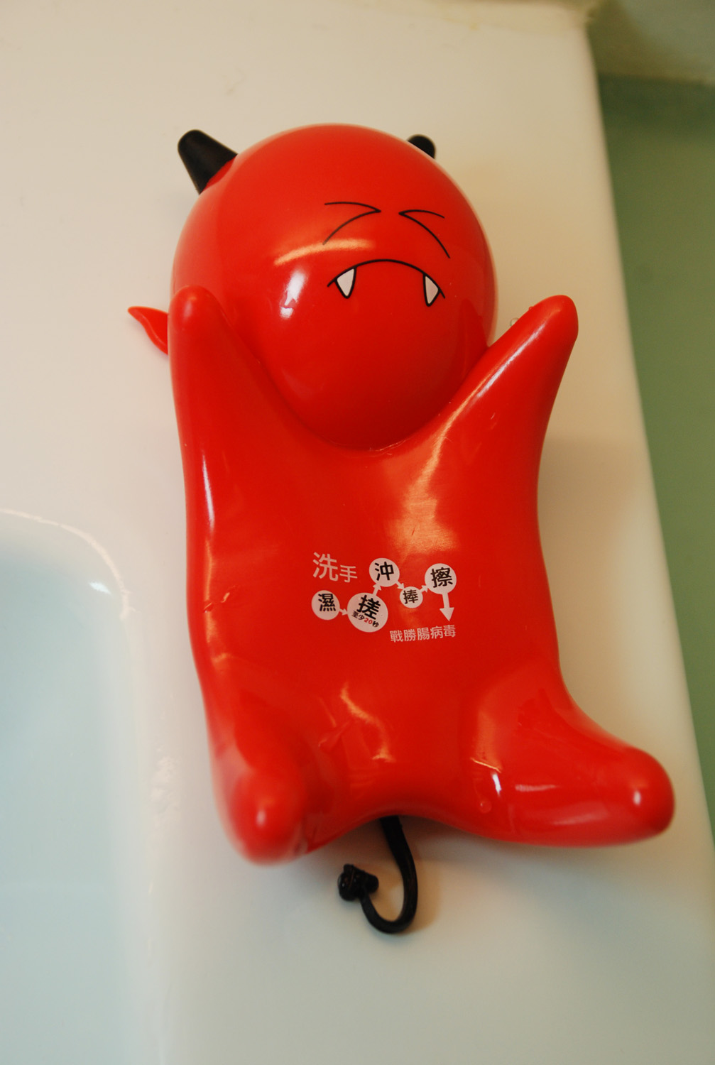 為了將「勤洗手,預防腸病毒」的防疫觀念,融入民眾的日常生活中,疾病管制局除了在今年暑假期間辦理的「戰勝腸病毒‧全家總動員」網路K歌熱舞活動競賽外,還特別製做了「打擊腸病毒惡魔肥皂座」,作為參與網路活動民眾的抽獎贈品。