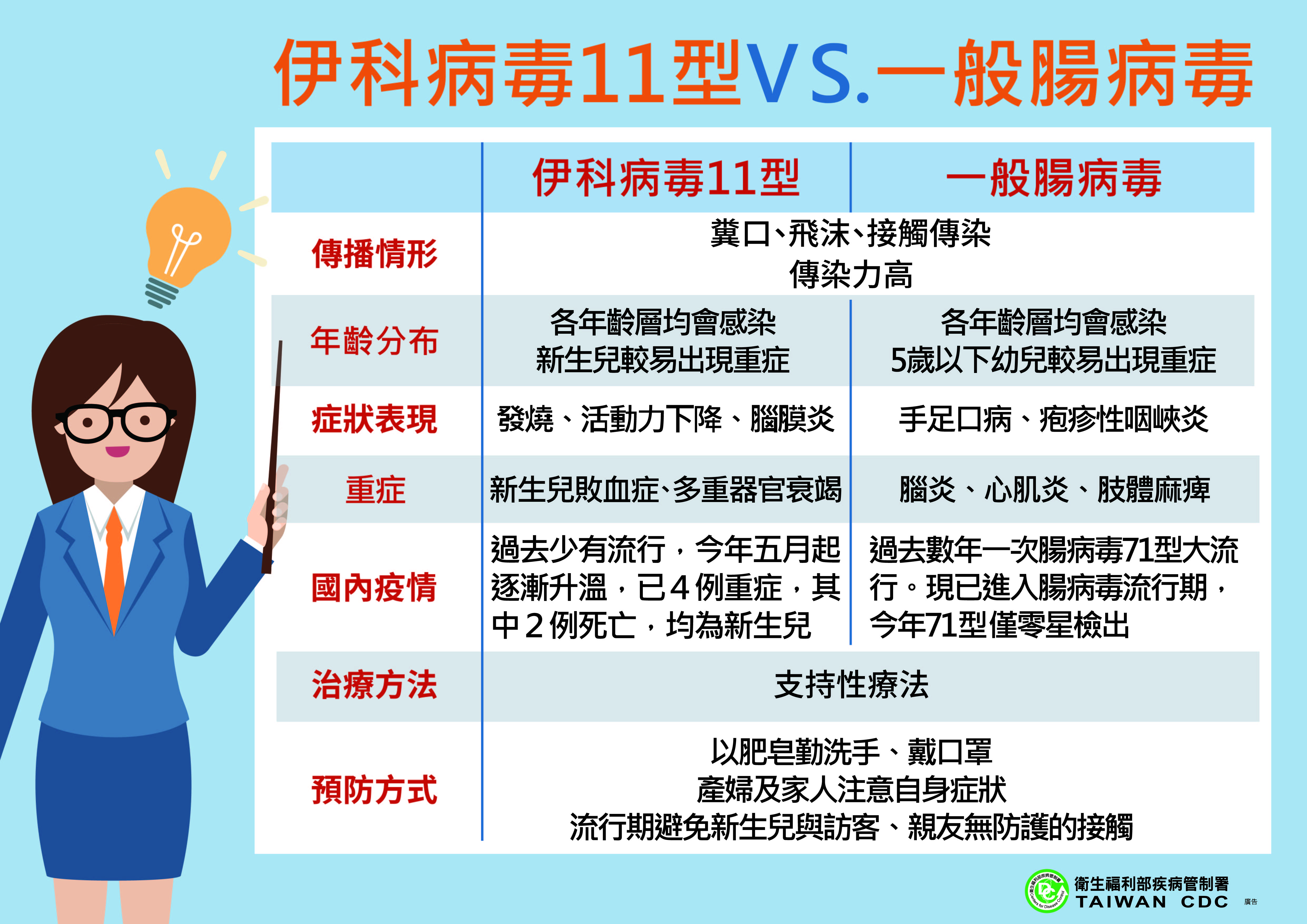 國內上週(6月3日至6月9日)腸病毒就診人次超過流行閾值(11,000)已進入流行期;另新增2例新生兒感染伊科病毒11型併發重症確定病例,其中1例死亡。由於新生兒感染腸病毒後可能引發重症,為確保新生兒免於腸病毒感染威脅,疾病管制署今(12)日特別邀請台灣新生兒科醫學會許瓊心理事長,說明孕產婦及新生兒之腸病毒預防方法。