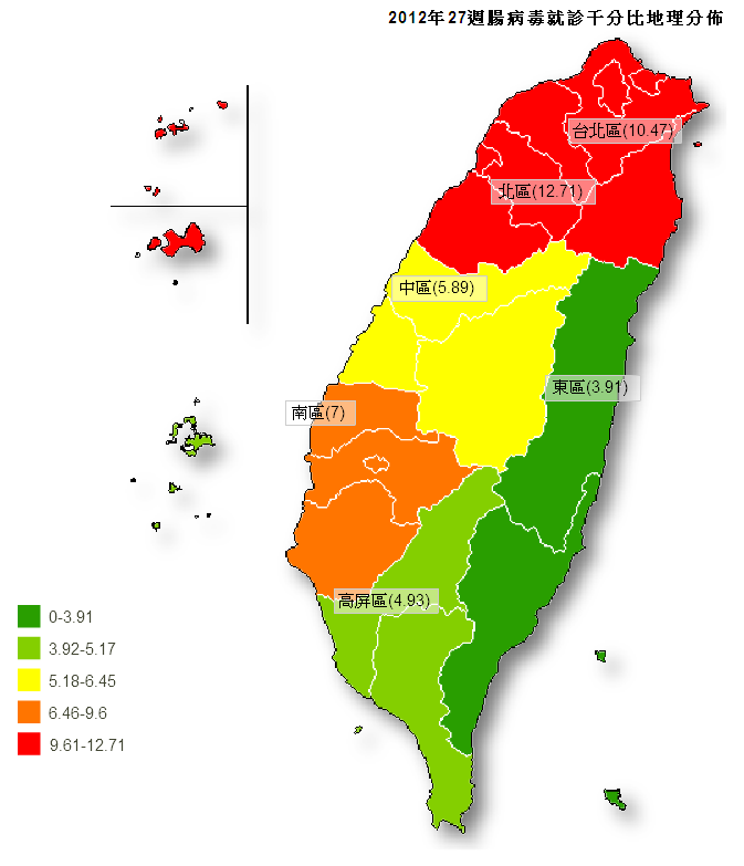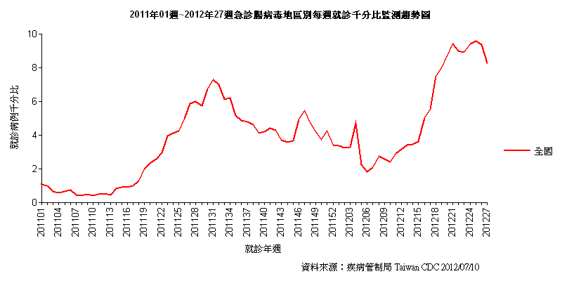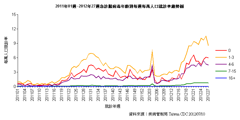 為掌握各縣市腸病毒個案就醫情形及疫情趨勢變化,疾管局與全國170家以上急救責任醫院合作,透過科技整合力量,嚴密監測全台腸病毒流行趨勢變化及波動,民眾一旦因腸病毒至這些醫院就診,該局即可經由資訊系統自動接收疾病診斷碼訊息,轉化資料為疫情流行趨勢及統計監測表報,以掌握全台各地疫情、走勢變化及高危險群年齡分布等資訊(各區域流行趨勢如附圖)。除了腸病毒外,該局也同時利用此急診就醫資料,進行類流感、腹瀉及紅眼症等重點疾病就診率趨勢監測,以防患未然態度進行重要傳染病監測。