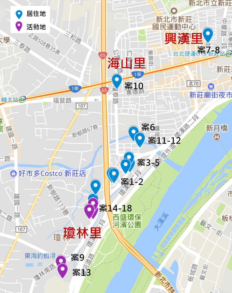 新北市個案為新莊區合鳳里60多歲女性及瓊林里50多歲男性,2人分別於8月15日及21日發病,經就醫檢驗登革熱NS1快篩陽性通報後確診。目前合鳳里個案症狀已改善並恢復作息,瓊林里個案住院中。其中合鳳里個案發病前曾有瓊林里菜園活動史,瓊林里個案住家亦鄰近新莊區第15例與第16例活動之瓊林里私人菜園,研判2人均與瓊林里群聚相關。衛生單位持續針對個案住家及活動地周邊進行疫情調查、孳生源清除、噴消及民眾衛教等防治工作。