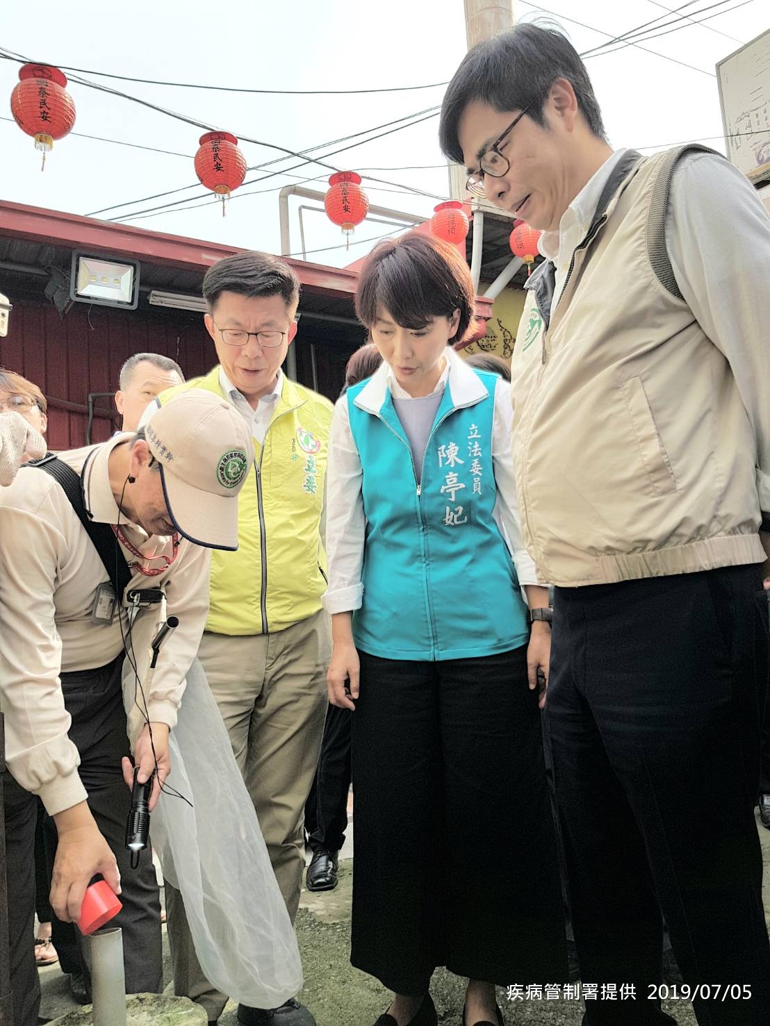 隨後陳副院長率領防疫團隊,視察臺南市中西區病例發生處及周邊地區,了解環境管理及孳生源清除情形。陳副院長特別強調,登革熱是一種環境病、社區病,民眾除維持警覺做好防蚊措施外,如出現發燒、頭痛、後眼窩痛、肌肉關節痛、出疹等疑似症狀,應儘速就醫;另夏季高溫多雨,最易造成病媒蚊孳生,全體市民應一起動起來,落實「巡、倒、清、刷」,澈底清除孳生源,消除登革熱。