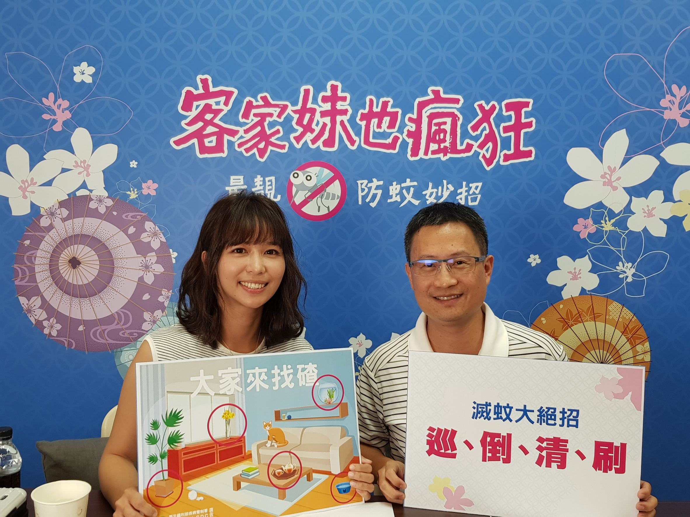 每逢炎炎夏日,臺灣各地氣溫居高不下;且伴隨午後陣雨,病煤蚊孳生的風險,也隨之提高。為向民眾宣導登革熱預防措施,疾病管制署今(23)日中午,於「1922防疫達人」官方臉書專頁,舉辦「客家妹也瘋狂 最靚防蚊妙招」直播活動,邀請擁有豐富外景工作經驗的「客家妹」陳明珠,和防疫醫師蔡懷德,共同分享登革熱的預防方法,並向大眾解說,登革熱的常見迷思。