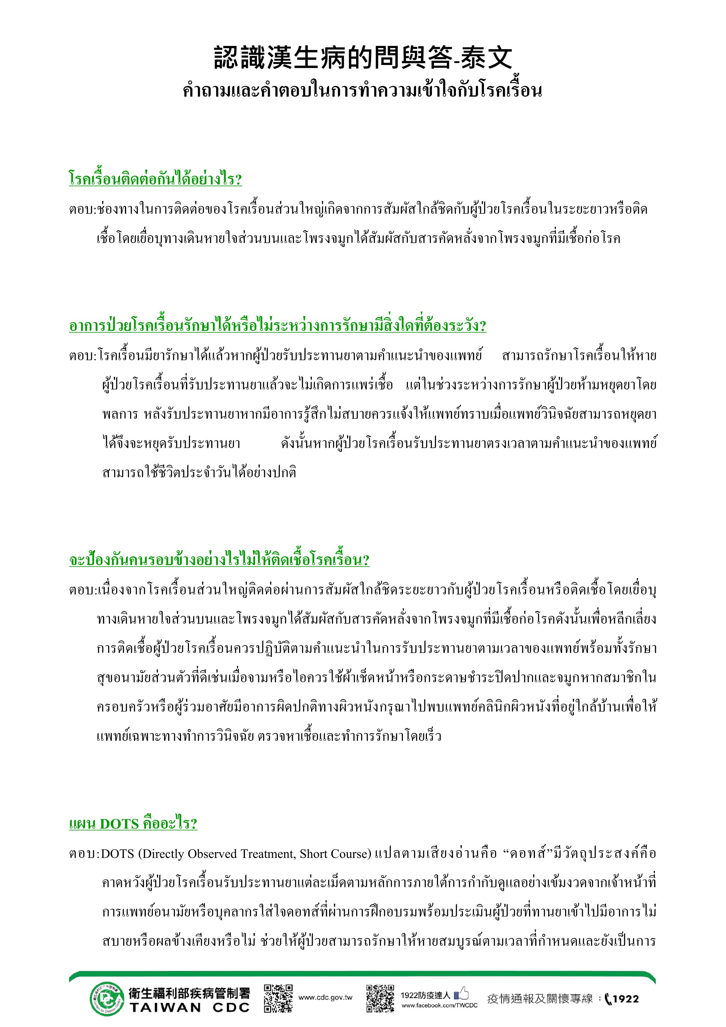 【คลิก】คำถำมและคำตอบในกำรทำควำมเข้ำใจกับโรคเรื้อน(หน้า 1)認識漢生病的問與答(泰文).jpg