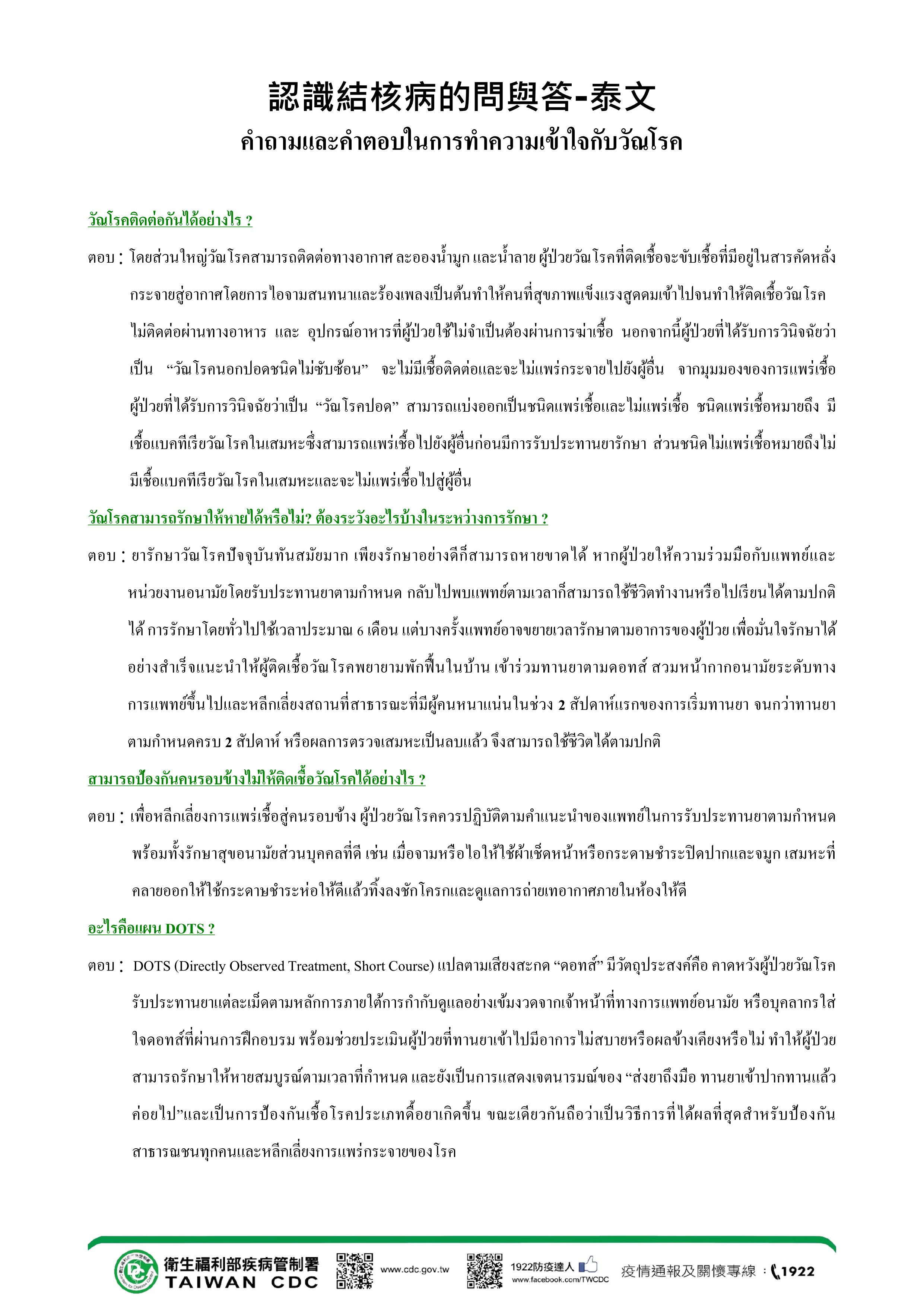 【คลิก】คำถามและคำตอบในการทำความเข้าใจกับวัณโรค(หน้า 1)認識結核病的問與答(泰文).jpg
