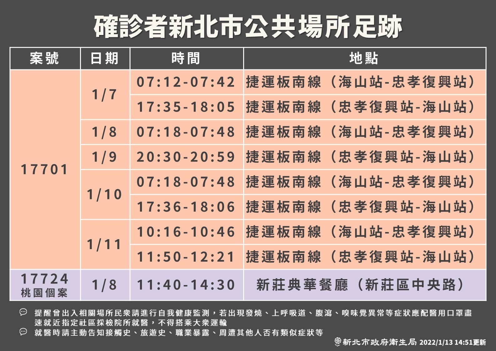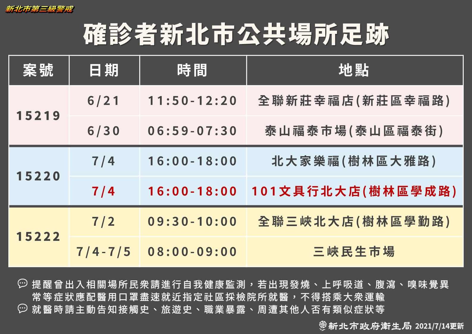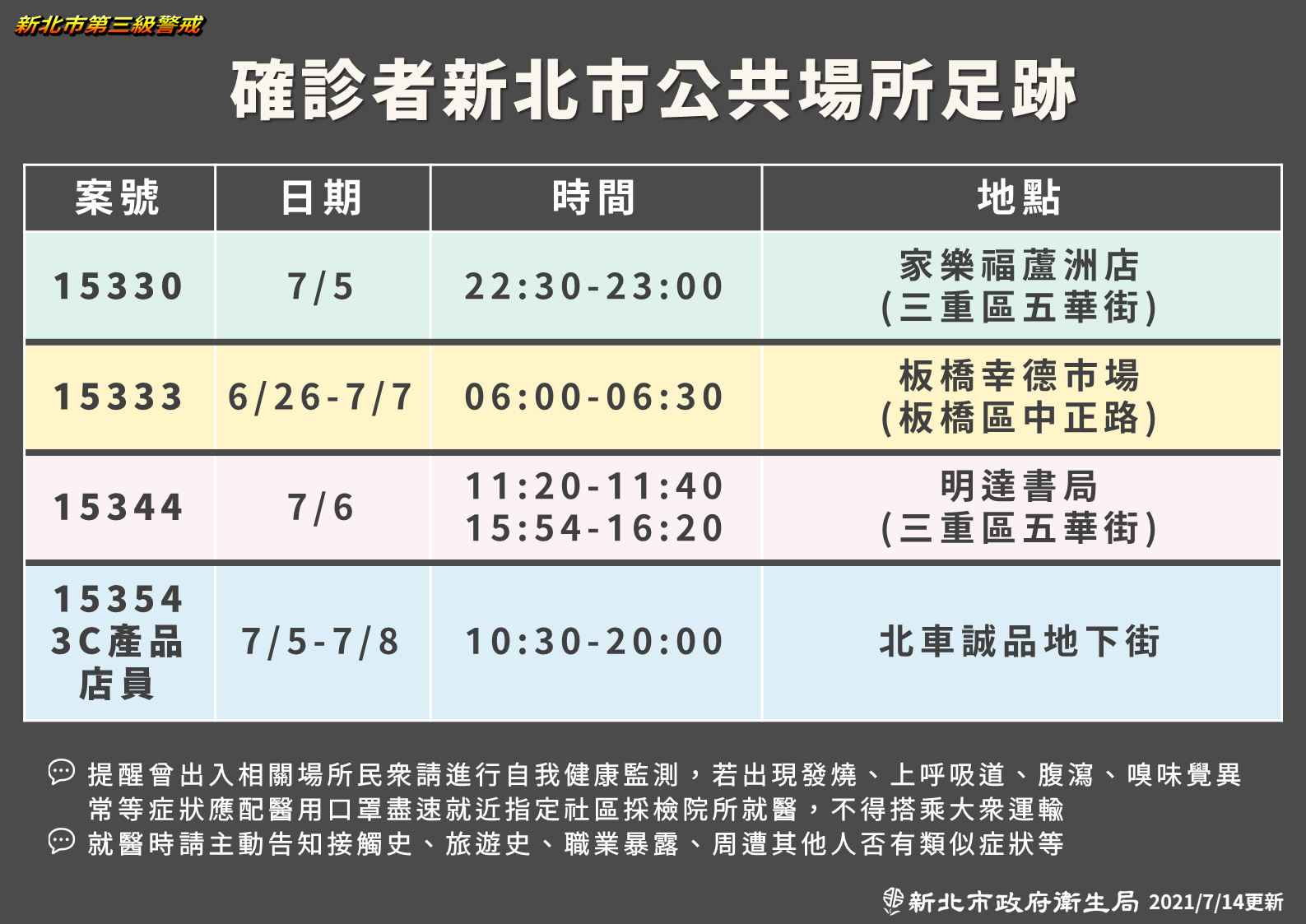 新北市-確診個案公共場所活動史(0707)0714更新