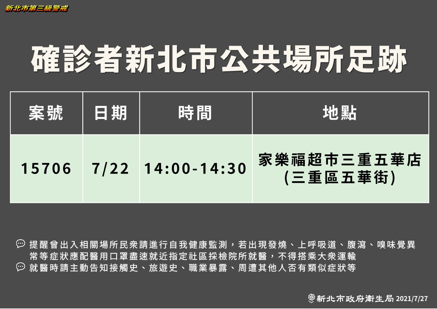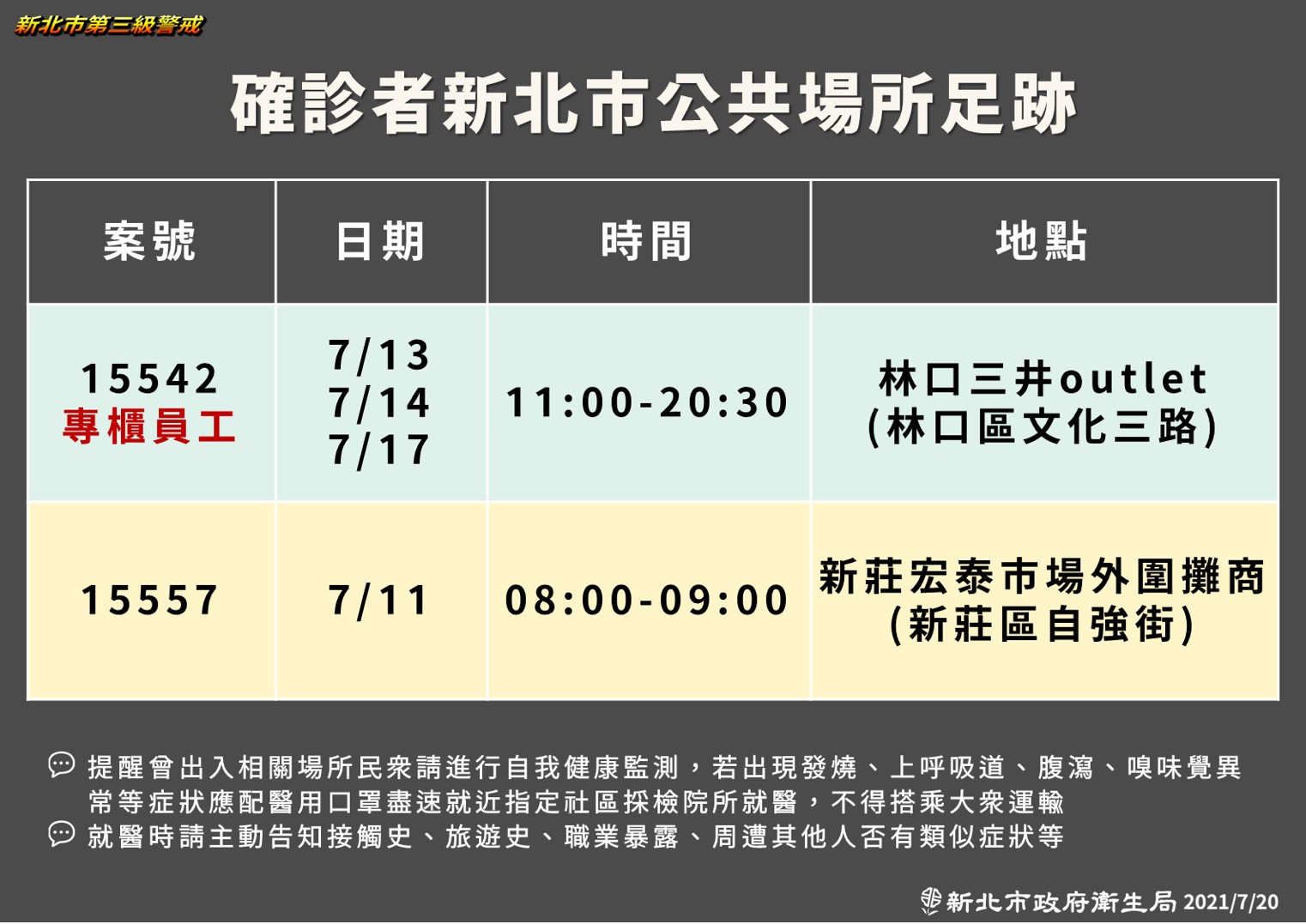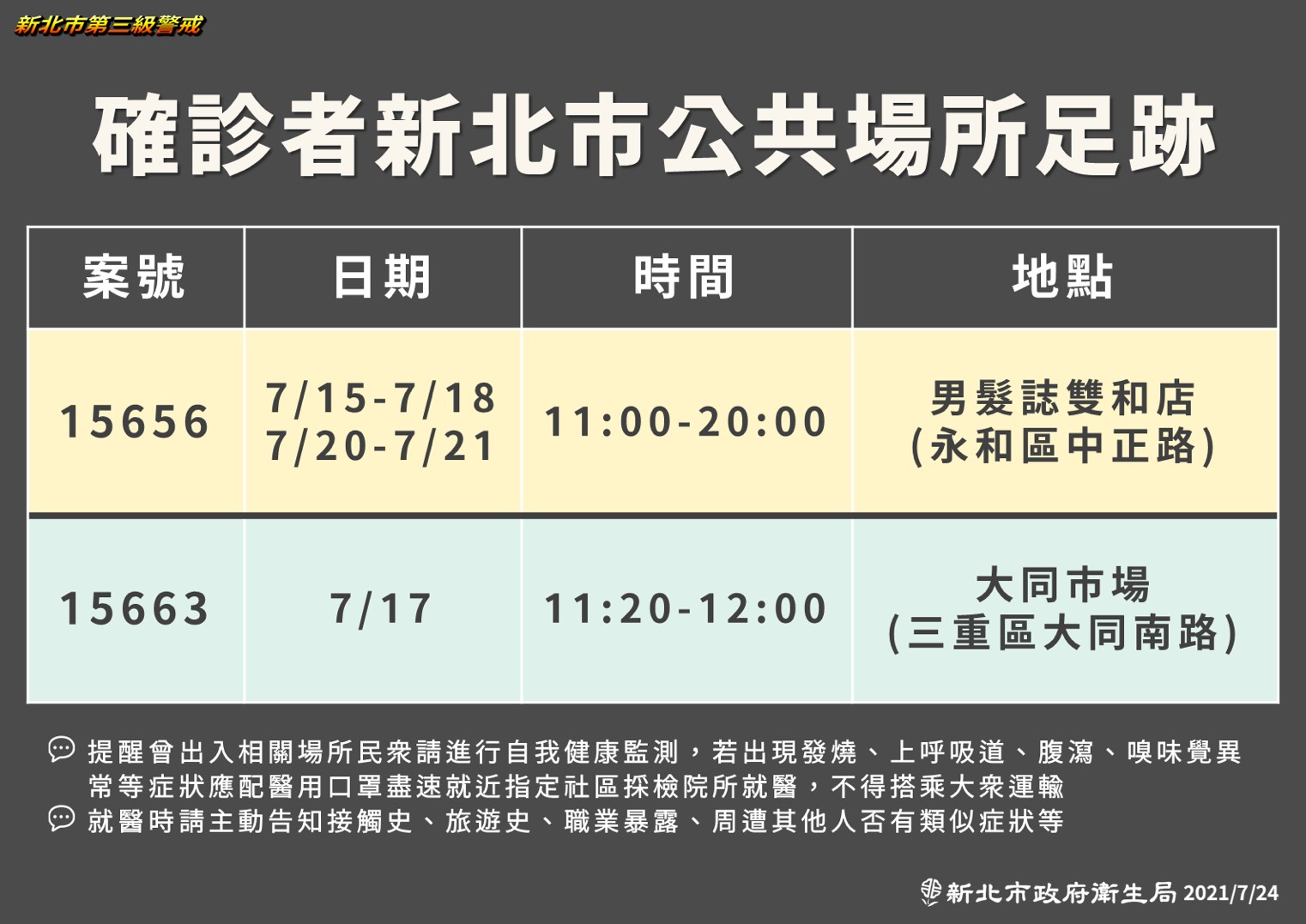 新北市-確診個案公共場所活動史(0707)0714更新
