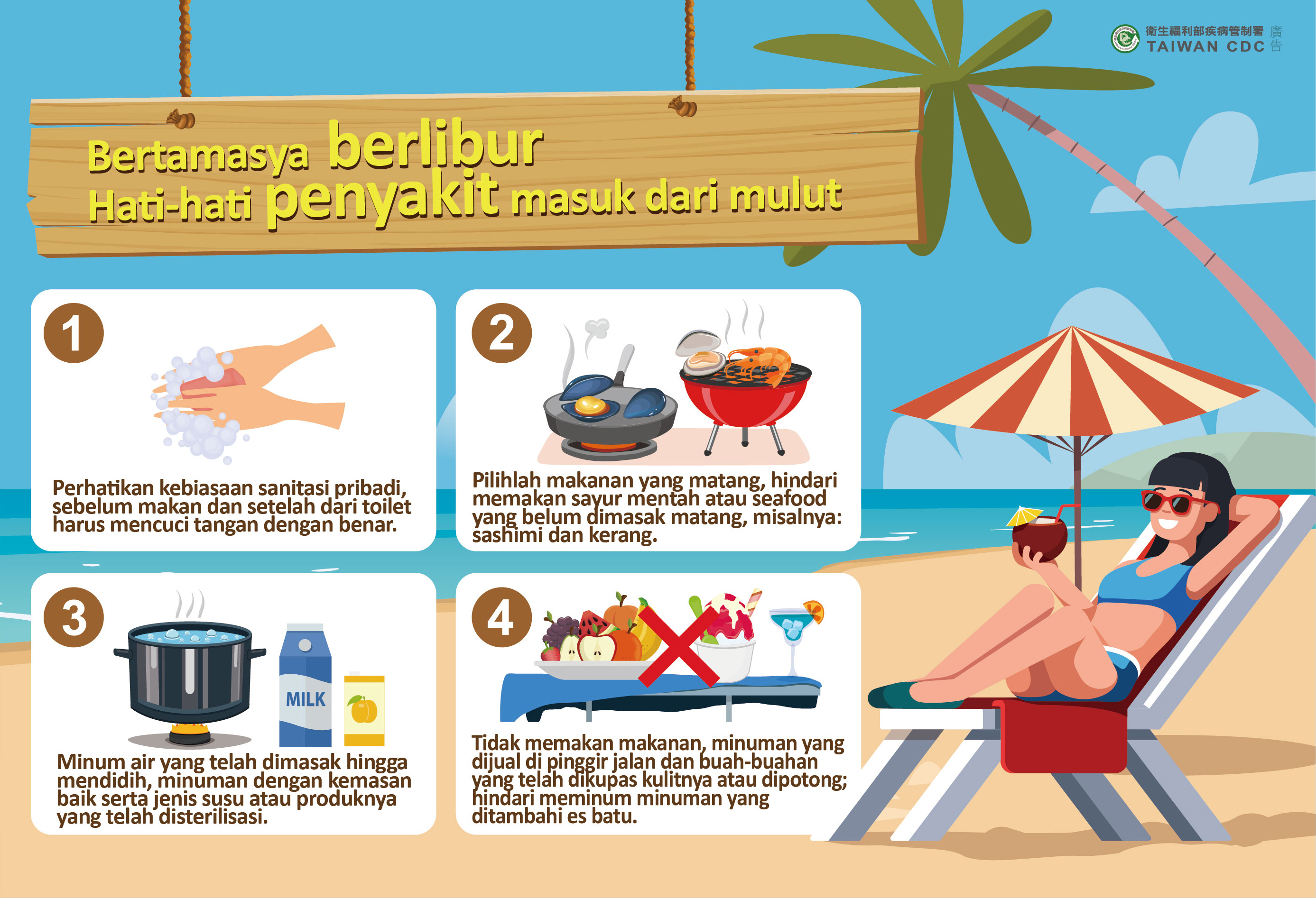 【Klik】Bertamasya berlibur Hati-hati penyakit masuk dari mulut旅遊渡假小心病從口入(印尼文).jpg